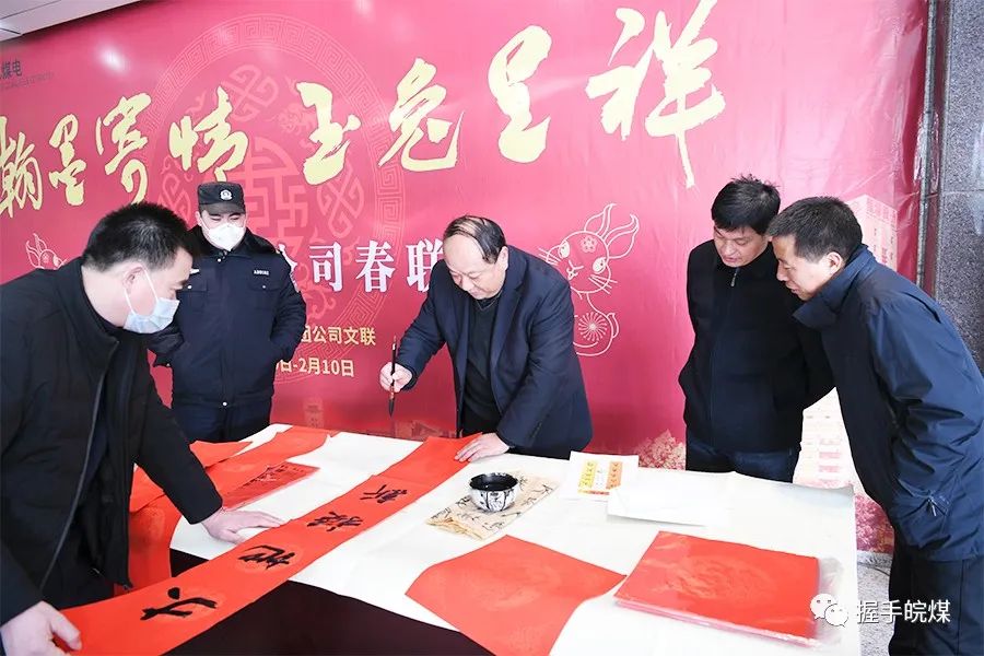 為迎接農(nóng)歷新年,近日,皖北煤電集團(tuán)公司工會(huì)在總部舉辦以“翰墨寄情、玉兔呈祥”為主題的春聯(lián)展活動(dòng),春聯(lián)展時(shí)間一直延續(xù)到春節(jié)后。1月19日上午,皖北煤電集團(tuán)公司機(jī)關(guān)工會(huì)在集團(tuán)公司機(jī)關(guān)二樓大廳舉辦送春聯(lián)活動(dòng)。該集團(tuán)公司黨委副書記周偉到現(xiàn)場(chǎng)觀看。集團(tuán)機(jī)關(guān)工會(huì)相關(guān)負(fù)責(zé)人以及各單位書法愛好者參加活動(dòng)。
