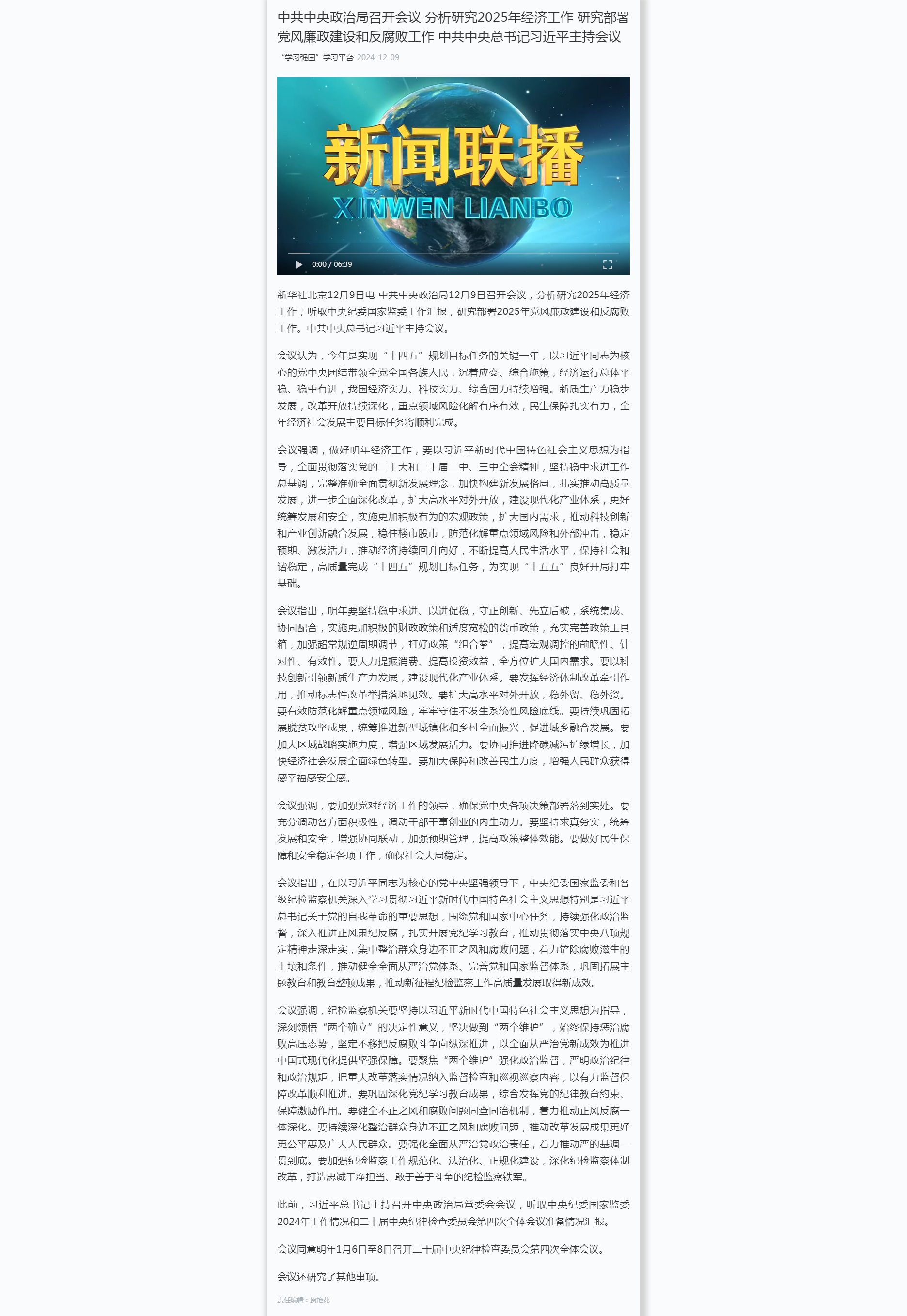 中共中央政治局召開會議 分析研究2025年經(jīng)濟工作 研究部署黨風(fēng)廉政建設(shè)和反腐敗工作 中共中央總書記習(xí)近平主持會議