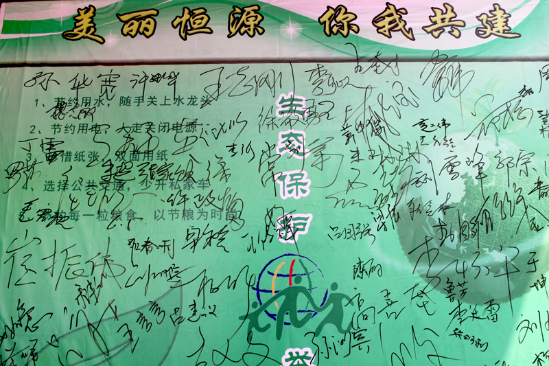 昌恒公司緊扣自然環(huán)境污染、節(jié)能減排等方面制作了宣傳條幅,印制了環(huán)保宣傳彩頁(yè),在礦區(qū)食堂門口設(shè)置了固定宣傳點(diǎn)。青年義工化身“美麗使者”利用下班時(shí)間通過向來往職工群眾發(fā)放環(huán)保彩頁(yè)、講解環(huán)保知識(shí)等方式,不斷增強(qiáng)廣大職工群眾的環(huán)保意識(shí),積極營(yíng)造“綠色礦山我們共建 美好生活我們共享”的濃厚氛圍,呼吁大家為加快建設(shè)綠色和諧礦山做出積極貢獻(xiàn)。
